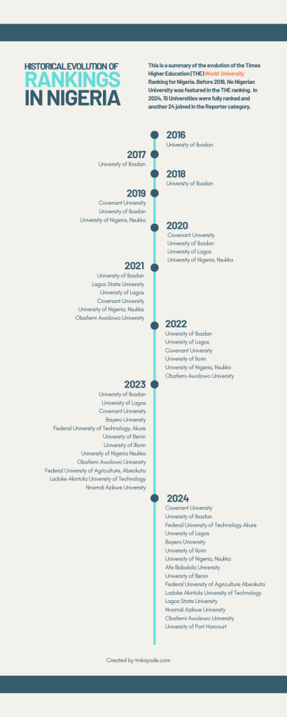 Figure 1: Evolution of Nigerian Universities Performance in THE World Universities Ranking
